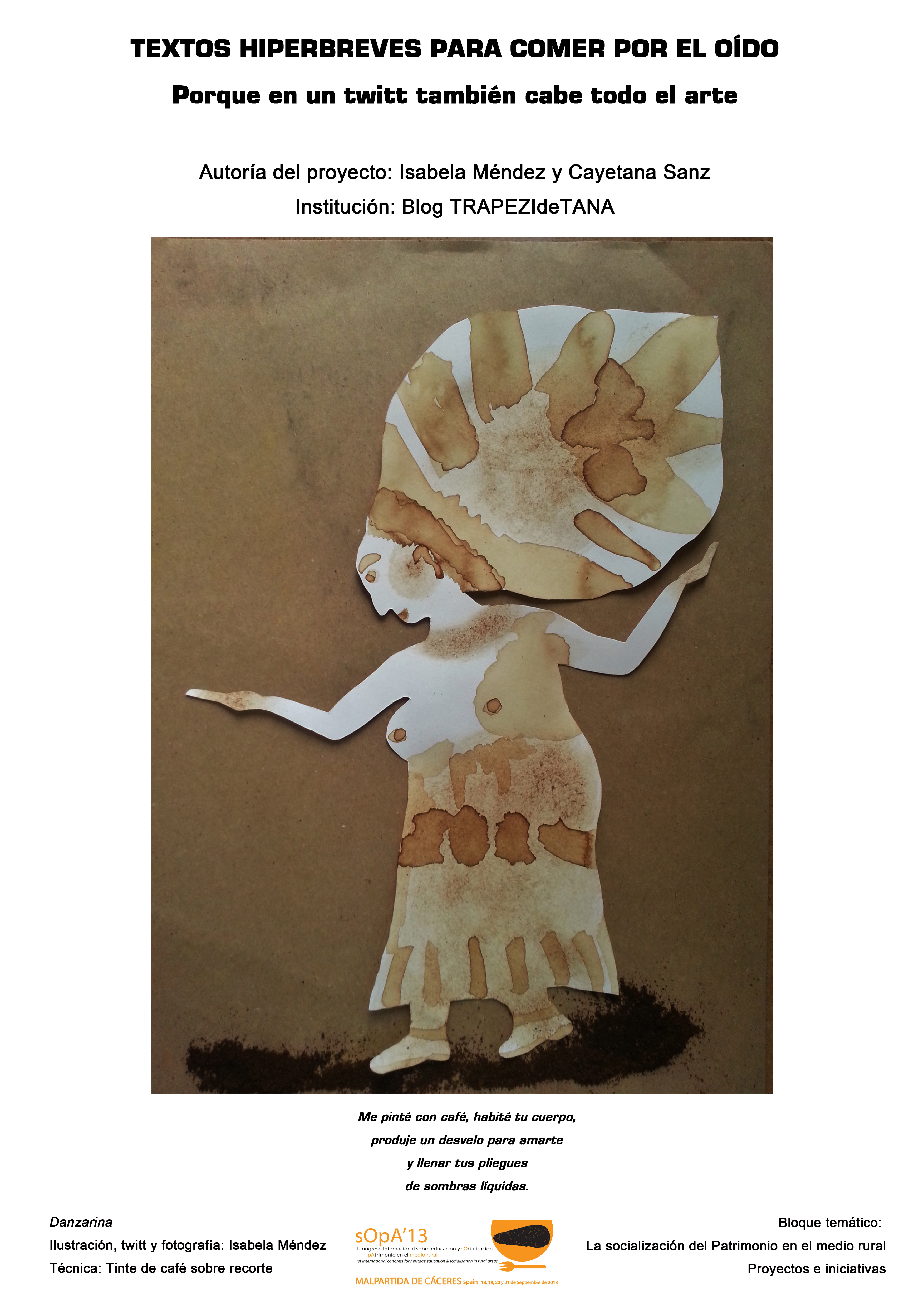 Agradecemos a la organización del Congreso, y de forma especial a UNDERGROUND ARQUEOLOGÍA, la acogida y la atención prestada y desde aquí os invitamos a todos a conocer un poquito más lo que desde el vientre de un tintero (el blog de Isabela Méndez) y un trapecio de tinta (mi blog) vamos tejiendo con la ayuda y la colaboración de diferentes profesionales, como el realizador de sonido y efectista Rolando Alonso, quien ha hecho posible que las palabras de los cuentos y twitts de Isabela Méndez y su voz naveguen en un mar de atmósferas sonoras para crear en la mente del oyente un universo poético y una experiencia estética.